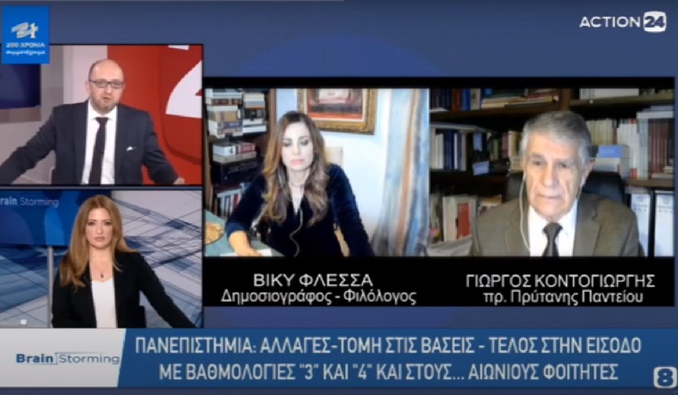 Ο Ομότιμος Καθηγητής Πολιτικής Επιστήμης και πρώην Πρύτανης του Παντείου Πανεπιστημίου κ. Γιώργος Κοντογιώργης στην εκπομπή «Brainstorming» της 15.1.2021 του τηλεοπτικού σταθμού Action 24, συζητά με τους δημοσιογράφους Σταμάτη Ζαχαρό και Κατερίνα Δούκα για τις αλλαγές που φέρνει το νομοσχέδιο […]